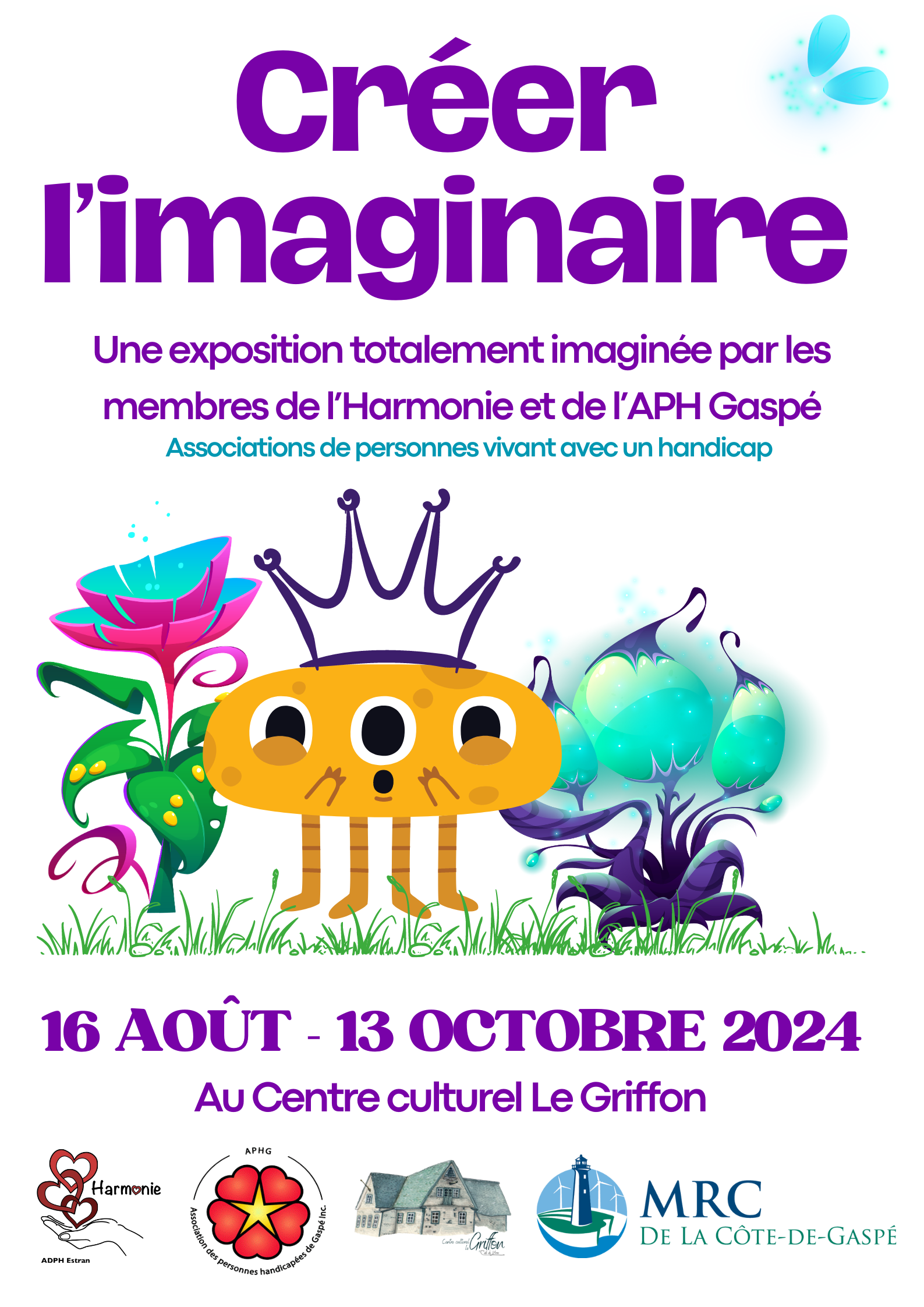 On a très hâte de vous présenter notre nouvelle exposition, CRÉER L'IMAGINAIRE, en collaboration avec l'Association des personnes handicapées du secteur l'Estran au Centre Culturel Le Griffon !